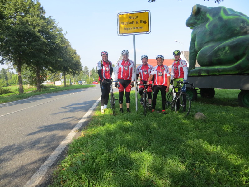 Nach der Verabschiedung durch den ersten Stadtrat Werner Kappel am Donnerstagmorgen, sind in zwei Tagesetappen von insgesamt ca. 260km mit einer Zwischenübernachtung im Weserbergland bei Nieheim, fünf aktive Radfahrer Norbert Keller, Reiner König, Peter Todtenbier, Andreas Ertl u. Heinz-Jürgen Huber vom Radfahrerverein 1898 „über Berg und Tal“ Neustadt e.v. nach Neustadt am Rübenberge gefahren.